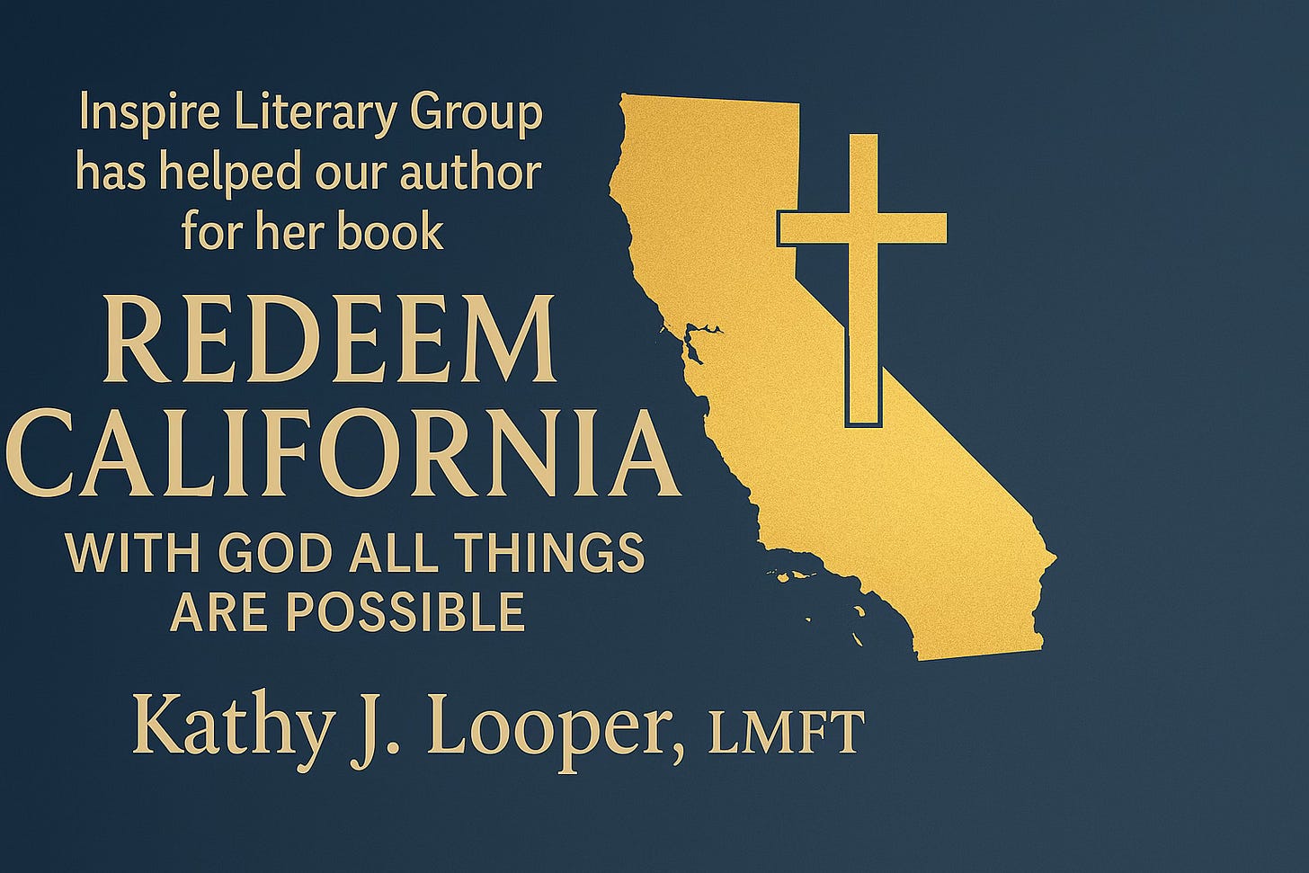 As part of this historic moment for California’s future, Inspire Literary Group is honored to have helped bring forth a powerful new book that echoes the same heartbeat of revival and transformation: Redeem California: With God All Things Are Possible by Kathy J. Chastain (formally Looper), LMFT.